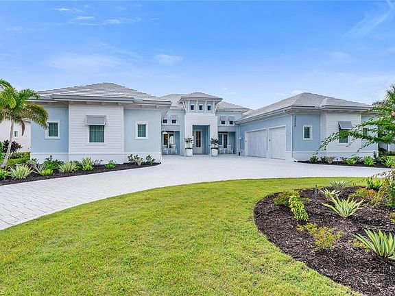 H11700 - Waterfront Grand Estate Home located on the private peninsula in WildBlue. This home has more than $1M in upgrades, and was custom re-designed and engineered to include an air-conditioned six-car garage with 12-foot ceilings, remove interior walls and outdoor columns to capitalize on sunset views. Beautiful custom wide-plank flooring throughout, chef's kitchen with T-design kitchen island and Thermador professional gas appliances. Each room features unique designer tile and lighting selections. Two washer/dryers. Four luxurious bedrooms, plus office and bonus room, 41/2 baths, open-concept living make this a gracious home for entertaining friends and family. Pocketing doors create a seamless transition outdoors to the custom pool and spa, living room, dining area, summer kitchen and fire pit seating overlooking WildBlue's largest lake. With western sunset views, the outdoor living is truly magical! Custom and designer furnishings were carefully curated to complement every element of this stunning home. A boater's paradise, the property includes a deeded dock with electric and water. Boat to the new amenities center, restaurant and spa. Welcome to your Florida Oasis!