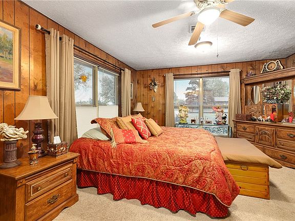 Gorgeous family home on 4 acres in the heart of Gravette. Home features 4 spacious bedrooms, 1.5 bathrooms, eat-in-kitchen, a fireplace, an oversized garage, and a large covered back porch overlooking the massive yard perfect for entertaining family or friends alike. The acreage features beautiful landscaping all around, the main house, a large metal shop, a spacious barn, and a fully furnished guest house. The guest house has electricity, water, heat/AC, and feels like a cozy cottage getaway with views. Come make this your home today and feel like you have escaped to your own little island yet just be minutes from town!!