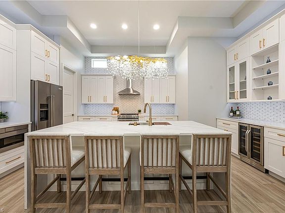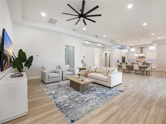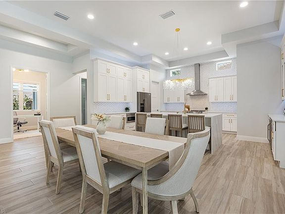 Live the Florida lifestyle to the fullest in this beautifully designed lakefront home in Royal Palm Golf Estates! This 3,142 sqft residence offers 3 spacious bedrooms + office, 3 full bathrooms, 1 half bathroom, and a light-filled open floor plan perfect for both relaxing and entertaining. Enjoy soaring tray ceilings, upgraded tile flooring, and expansive water views from nearly every room. The gourmet kitchen features an oversized island, cabinet lighting, walk-in pantry, and dual-zone wine fridge—ideal for hosting family and friends. Each bedroom includes a private en-suite bath and custom walk-in closet, while the luxurious primary suite offers his & hers closets and a spa-inspired bathroom retreat. Step outside to your oversized screened lanai with a built-in outdoor kitchen, grill, and multiple seating areas overlooking the tranquil lake. Additional highlights include electric blinds, French doors, custom cabinetry, and a spacious laundry room with extra storage. Located in a gated golf course community with low HOA fees, underground utilities, and access to Eagle Lakes Golf Club. Just minutes from Marco Island and downtown Naples, this home offers the perfect blend of comfort, elegance, and convenience
