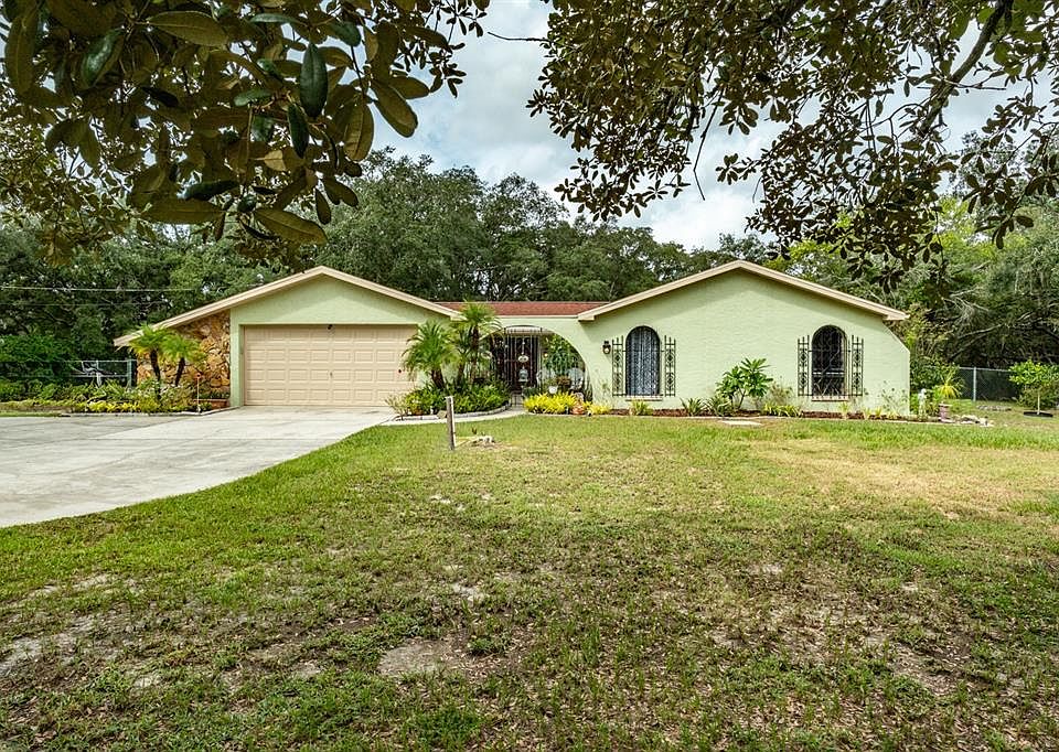 Welcome to your new home! Premium, private home site of 1.3 acres with no HOA! Meticulously maintained 2,256 sq. ft. home with 3 bedrooms, 2 full baths and a 2 car garage. Everything you’ve been looking for… privacy and convenience abound! The great room/kitchen combo boasts a stunning stone-faced fireplace, perfect for ambiance and cozying up in Florida’s cooler months. The updated kitchen is perfectly situated for family meals and entertaining and shows beautiful, solid wood cabinetry and stainless appliances. The primary suite offers a private retreat with an ensuite bath and generous walk-in closet. The split floor plan ensures maximum privacy for you and guests or family. The secondary bedrooms are on the opposite side of the home and share a well-appointed full bath featuring dual sinks and a tub/shower combination. Entertaining and family space is extended to a huge, screened porch looking out on a tranquil wooded setting. The large, circular driveway offers a grand entrance to the home and the magnificent grounds beyond. Enormous front and back yard offering room for play and gardening… endless possibilities! A private well and septic system offers independence and comfort. Located with easy access to the Suncoast Parkway and US-19, commuting to Tampa and Pinellas County is a breeze! Don’t miss this incredible opportunity to own a lovely home on an exceptional home site in a prime location!