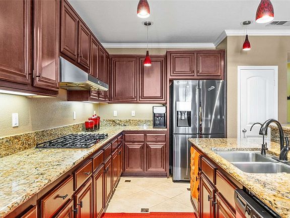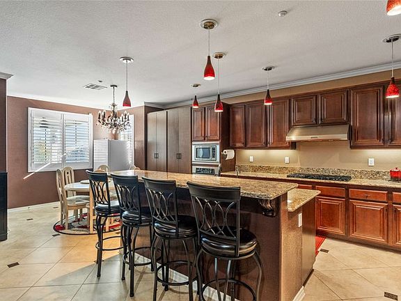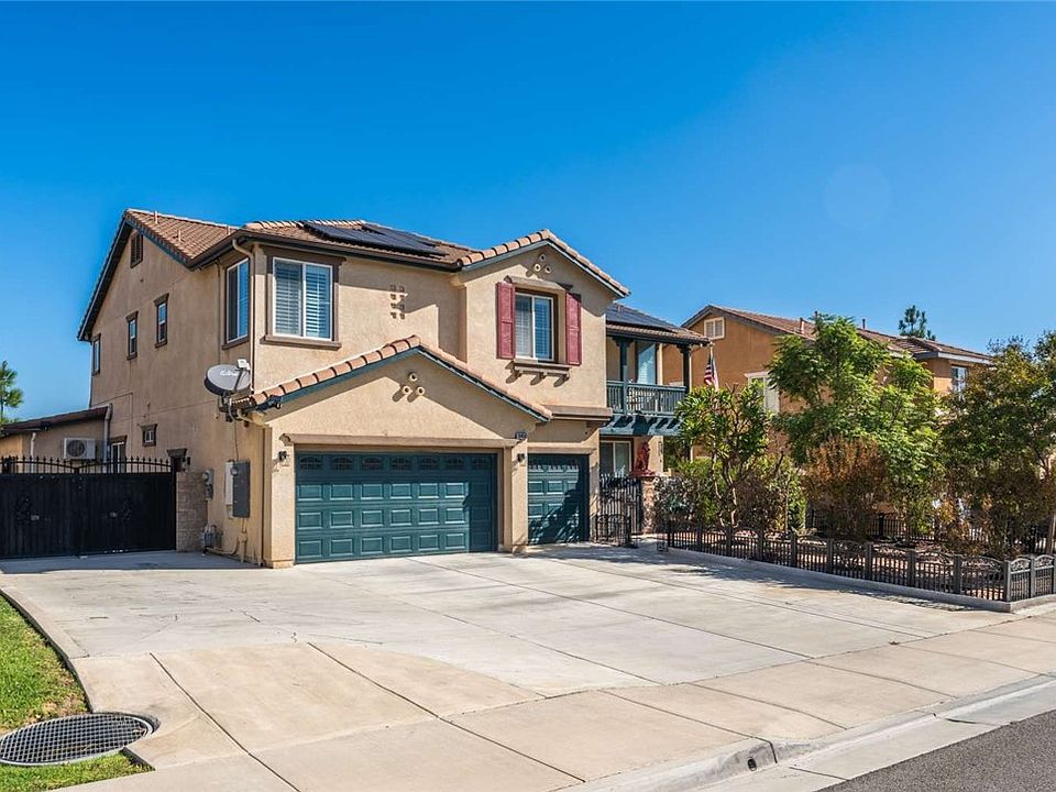 Once-in-a-lifetime opportunity! This meticulously maintained 6-bedroom, 4-bathroom home offers approximately 3,700 sq ft of beautifully designed living space with breathtaking panoramic views and exceptional indoor/outdoor entertaining areas. The spacious open-concept layout includes formal living and dining rooms, a custom fireplace, and a chef’s kitchen featuring an oversized island with seating for four, granite countertops, stainless-steel appliances, a 600 CFM range hood, and a commercial-grade reverse osmosis system. Two private guest suites each have their own entrance, mini-split A/C units, and washer/dryer hookups—perfect for in-laws, caregivers, or income potential, with one room currently rented. Upstairs, the luxurious primary suite spans 30x16 and features vaulted ceilings, a private balcony with French doors, dual sinks, a brand-new spa tub with jets, separate shower, and a large walk-in closet. All bedrooms are generously sized (13x13 or larger), and there’s an additional bright and airy 13x17 sunroom. Throughout the home, you’ll find travertine flooring, custom paint, tile-upgraded bathrooms (no fiberglass), crown molding, plantation shutters, and remote-controlled ceiling fans. The garage includes epoxy flooring, built-in cabinets, and a 25-gallon water softener system with a separate 2-gallon under-sink drinking water tank. Built by CENTEX with premium 4x2 framing every 12 inches for added strength. The low-maintenance backyard features nearly 20 tropical fruit trees, a bird fountain, concrete hardscape, outdoor lighting, a huge covered patio with ceiling fans, and gated RV/boat/trailer parking with clean-out access. Additional upgrades include a 400 AMP electrical panel, an 80 AMP Tesla charger (charges two vehicles at once), owned solar panels, a new water heater (2023), and a newer A/C unit. The three-car garage and side yard offer exceptional storage and flexibility. HOA is only $37/month. Located in the highly desirable Woodcrest area, this home is close to Orange Terrace Park, schools, library, playgrounds, community center, shops, restaurants, banks, and more—all within walking distance to top-rated elementary, junior high, and high schools.