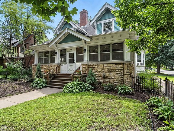 Charm and character 2+ story on large corner wooded lot. Rare 7 Bdrms, 3 Bathrms, large backyard + new huge patio plus detached 2 car garage and extra parking. Great opportunity for extended family or owner occupied investment property. Beautiful original woodwork including amazing custom fireplace and 4 season porch. Formal Dining Room with original built-in buffet and corner cabinet. 3 main level bedrooms and full bathroom with walk-in tub. Upper level : 4 nice size Bedrooms with full bathroom along with Living/Flex Room space with exterior steps to ground level for easy separate access to upper level. Unfinished upper level expansion with lots of good headroom space. Lower Level features huge Family Room, 3/4 Bathroom, Laundry Room space and storage rooms. Exterior stairs to lower level as well as inside staircase. Newer high end hot water tankless boiler and detached 2 car garage w/extra concrete parking pad. Great location and walking distance to shops, dining, etc