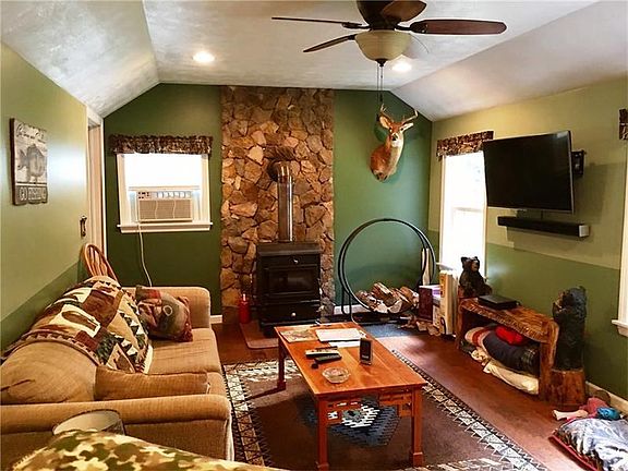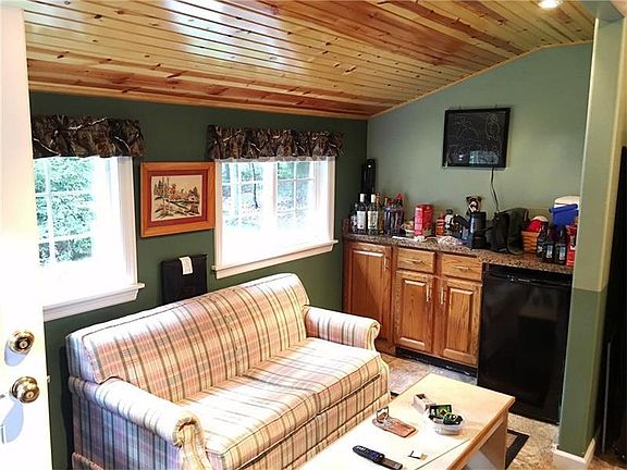 Beautifully re-done, secluded RETREAT/HUNTING CAMP on approximately 1/2 acre. Electric heat, stone fireplace and all systems new or re-done in last few years. Completely turn key ready with new kitchen and appliances, deck. All new electric baseboard heating units being installed to create permanent, year-round heat source. Storage buildings.
