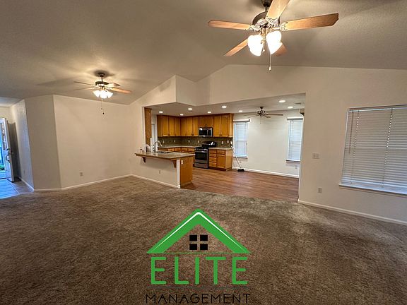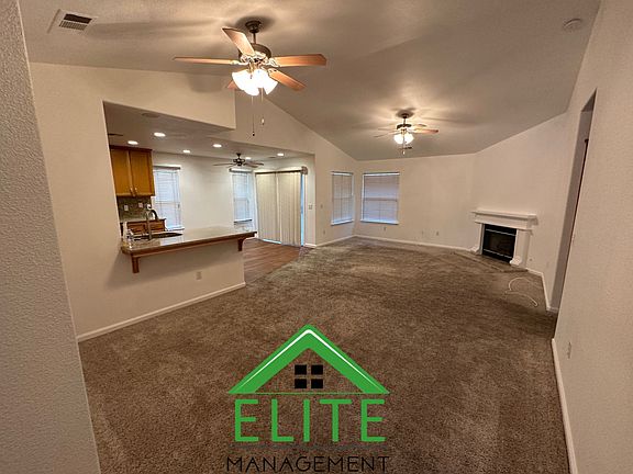 Step inside to an open and spacious floor plan with abundant natural light, vaulted ceilings, and neutral tones throughout. The living room provides a comfortable space for relaxing or entertaining, featuring a cozy fireplace and easy access to the dining area. The kitchen includes generous cabinet space, modern appliances, and a functional layout ideal for everyday cooking.