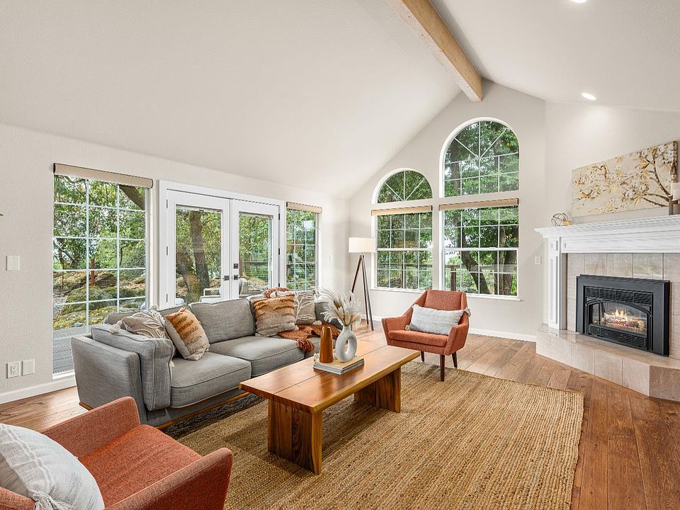 This beautifully updated multi-level home offers easterly-facing views, elegant indoor-outdoor living, and exceptional privacy. Surrounded by lush, professionally and naturally landscaped grounds and backing to open space, this hilltop retreat captures the essence of Wine Country living. Natural light emphasizes the open layout and scenic surroundings. Enjoy both a formal living room and a separate family room. The updated kitchen has plenty of workspace, energy efficient appliances and beautiful custom cherry cabinets with granite countertops. There is a bedroom/office and full bathroom on the main level. The bathrooms feature high-end finishes, while the spa-inspired primary suite includes expansive views and luxury finishes and fixtures. A versatile extra space adds flexibility for a home office, gym, or media room. With thoughtfully designed living spaces, refined updates throughout, and views that stretch for miles, this is an opportunity to own a peaceful, move-in-ready retreat in one of Santa Rosa's most desirable locations.