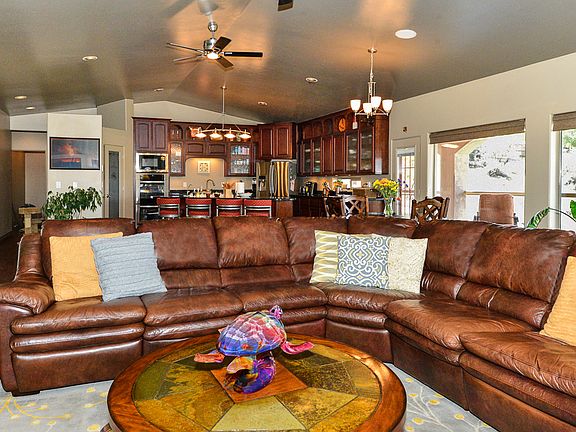 Breathtaking views from beautiful hillside home. Sleep in this luxurious five-bedroom beauty in Dark Sky Camp Verde with millions of stars peeking. Wake up close to the Verde River, iconic Sedona, Montezuma's Castle, historic Fort Verde, & 1000's of acres of National Forest. Thriving here is a life choice with no regrets. Enter this home to a great room, kitchen with finishes refined without sacrificing efficiency, and master suite, all richly designed to access a wraparound Mediterranean balcony. The walkout lower level has an office, family room, additional bedrooms, kitchen & bath room. Exits to the lower covered patio and event lawn.