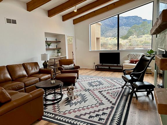 This stunning 3 bedroom, 2 bath home is a must-see! Enjoy the spectacular views of the Sandia Mountains from the greatroom, master bedroom and backyard. The large greatroom features a vaulted ceiling with beams and a two-way fireplace. The kitchen has been recently remodeled with granite countertops. Large utility room with storage cabinets and pantry. I addition to the 3 bedrooms, home has a small study/office. Both bathrooms have been updated. Additional updates include a TPO roof with warranty, new stucco, new vinyl flooring and has been freshly painted. Don't miss this great opportunity to own this beautiful Sandia Heights home!