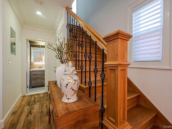 This newly renovated Luxury brick Home has all custom finishes, white stone front entry way , custom solid oak door, custom barn white oak flooring throughout main floor, open living room has custom Coffered ceiling with LED recessed lighting and built in surround sound, original stained glass features, open dining room with custom crown molding, French Door walks out to a large rear deck with granite tile , custom kitchen has Kraftmaid cabinets, Quartz counter tops, tile backsplash, LED recessed lighting with Lutron dimmers , stainless steel appliances, custom kitchen island with wine cooler and storage, powder room off hall, ductless ac/heat pump system, custom built stair case brings you to a luxurious second floor complete with primary bedroom with en-suite jacuzzi bath custom faucets & stand up shower, LED recessed lighting, walk in closet, large guest bedroom with walk in closet, hallway full bath with custom faucets, third level loft bedroom has a full bath, ductless AC/Heat Pump & radiators, lower level apartment has front and side entry way, completly renovated with summer kitchen, full bath , laundry room, ductless AC/Heat pump systems, new roof, spray foam walls , new windows, oil heat , gas hot water, all new steel I beams with new wood framing ,large back yard is perfect for entertaining , granite patio and storage shed, gated two car brick paved driveway, close to public transportation and retail stores.