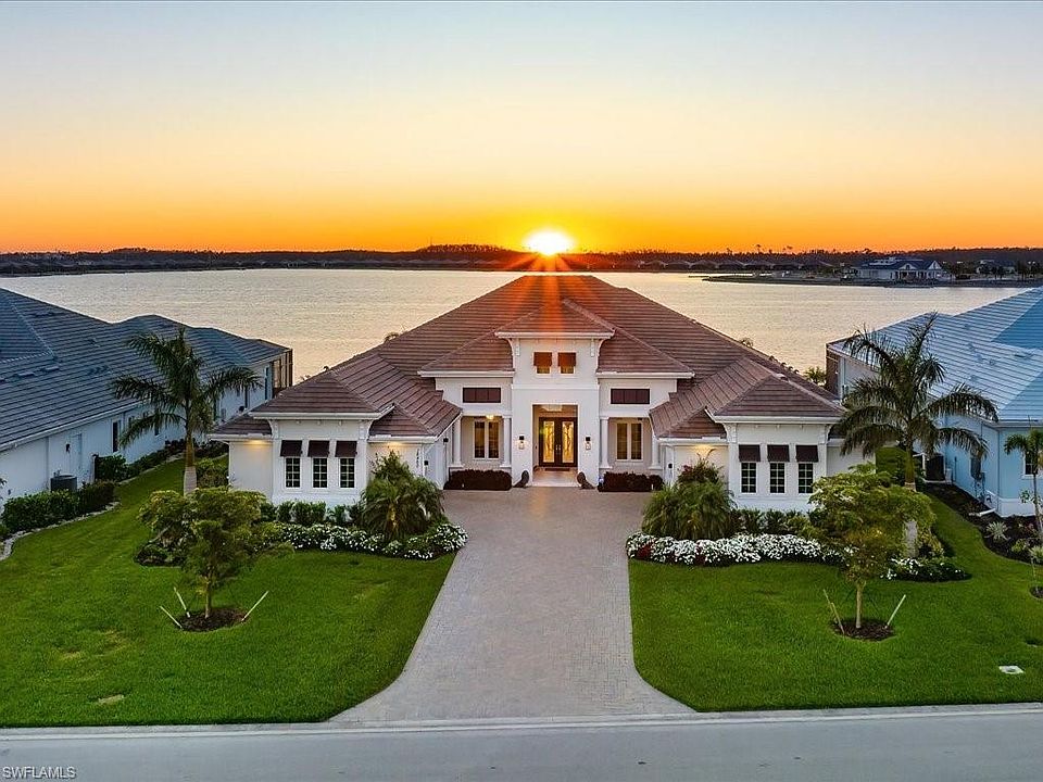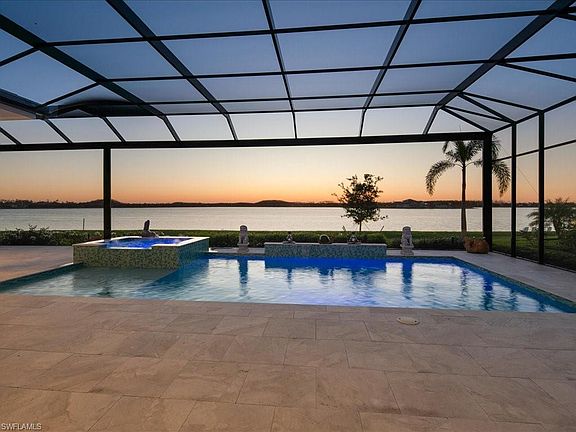 From The Moment You Step Inside "Sunset Solitude", You Are Graced W/ Magnificent & Seemingly Endless Western Lake Views. This Luxurious Customized Clairborne II Estate Home Sits On 1/2 Acre Lot, W/ 1100 Sqft. Of Outdoor Living, Making It Ideal For Entertaining. The Kitchen Offers Thermador & SubZero Appliances, Marvel Wine Fridge, & Mitred Quartz Island Countertops Which Is Home To 2 Dishwashers. The Custom Master Bathroom Includes His & Her Water Closets, Dual Shower Heads In Shower, Separate Soaking Tub, His & Her Sinks And Vanity Seat. Other Amazing Features Include Quartz Countertops Throughout, Lutron Shades, Sonos Sound System, Whole House Generator, RO System, Hurricane Impact Windows/Doors & Two 2-Car Garages That Are Both Insulated & Air Conditioned. Your Outdoor Living Offers You A Custom Saltwater Pool W/ Oversized Spa, Gas Fireplace, TV, Outdoor Kitchen W/ NatureKast Cabinetry, Sedona (Lynx) Built-In Gas Grill, Marvel Wine Fridge, Four Different Sitting Areas, All Of Which Can Be Enclosed W/ Electric "In-Wall" Hurricane Shutters To Lock Down When It’s Time To Leave. Electric & Water Already Installed For Your Future Private Dock On The Lake Out Back If Desired.
