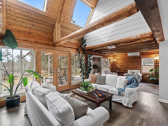 Streaming sunlight mingles with warm natural wood to create an airy and welcoming living space in the heart of this charming, and utterly private, home set on over 5.5 acres in Tumalo. The central gathering room lives large with double height ceilings and skylights that allow natural light to pour in. Out through the French doors enjoy a gracious deck with views of a peaceful tree grove & irrigated pasture beyond. A beautifully renovated kitchen is anchored by a large center island, natural stone countertops, top-of-the-line appliances including a Wolf range, and abundant cabinetry. On the upper level, two large bedrooms enjoy crisp white accent walls with an exceptional view of the large pond & South Sister to the west. An office/third bedroom together with the adjacent studio provide plenty of options for work or play.The 6000 SF covered arena, 5 stall barn, fully fenced perimeter, potting shed & 3.8 acres of irrigation rights, make this an ideal spot for your country living dreams.