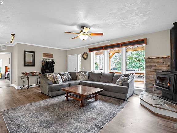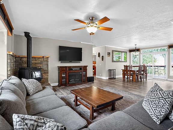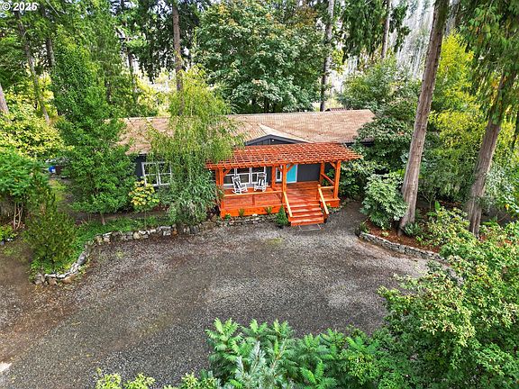 Incredible paradise of lush, terraced gardens, flowing koi pond, chardonnay grape vines, inviting sitting areas and views throughout this private and serene 2.7 acres. Ultimate sportsman's and fisherman paradise located with approximately 450 feet of Clackamas River frontage including inviting access to prime steelhead and salmon fishing, boating and swimming. Entertainment opportunities featuring beautiful Timber Framed amenities throughout including outdoor kitchen, bar, benches, trellis and front porch. Relax and enjoy wildlife, river and Mt. Hood views from several locations throughout the property. Light and bright home includes skylights, laminate flooring throughout, cozy woodstove, spacious kitchen with eat bar, island and gas range. Primary suite has double closets and large walk-in shower. Dining area includes slider to deck with property views. Outbuilding (20 x 30) serves as pump house, workshop or storage. Plenty of room for shop with separate driveway. Renewable agreement with Oregon Fishing Club plus Community Park with boat launch.