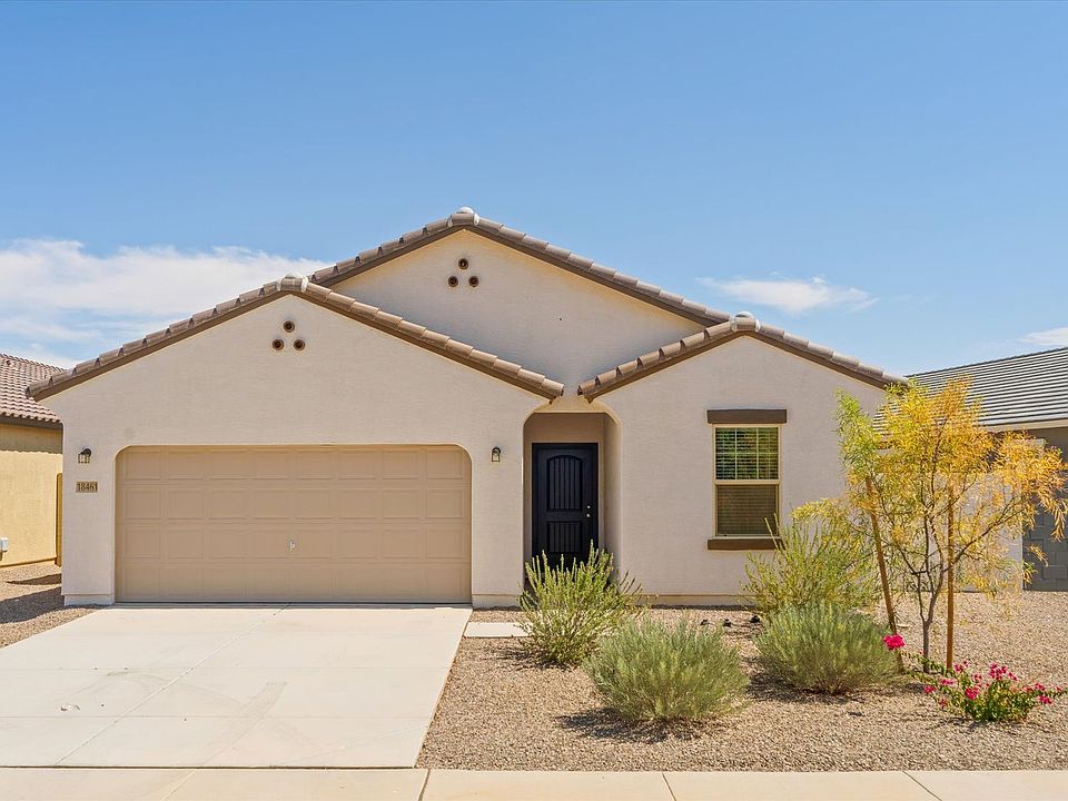 Beautiful home in PRIME location, close to major cities. Featuring countless upgrades such as white shaker cabinetry, granite countertops, stainless steel appliance package, and 9' ceilings throughout! Spacious walk-in closet in owners suite. Energy efficient features including dual pane windows, WiFi programmable thermostats and insulated garage doors. Front yard landscaping package, covered patio and porch. Neighborhood parks, playgrounds, covered picnic tables and greenbelts throughout. Spectacular mountain views! Conveniently located near the 347 and I-10. Highly rated schools, shopping, and dining! Just 5 miles from Fry's, Walmart, and CVS! Property is leased in its present physical condition.