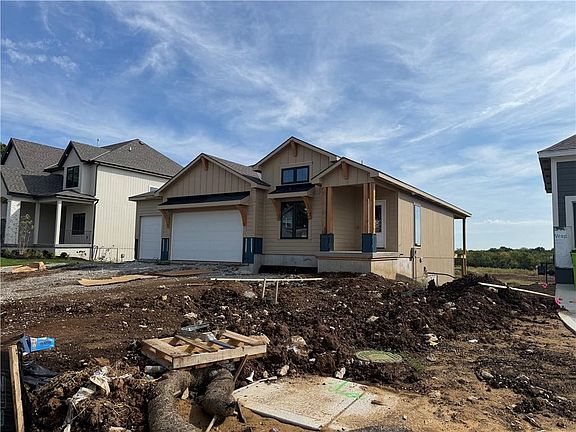 Award winning SAB Homes is a highly sought after builder in Southern Meadows community in the Blue Valley School District. This Hampshire reverse sits on lot 124 and has everything you need and more! From the incredible curb appeal featuring black windows and great roof line to the interior this home is packed with features. This home is perfect for many types of buyers, and fits the needs of most families and lifestyles. From the entry, this home has great flow and sight lines from the kitchen into the great room and dining room. The kitchen is well-appointed with a beautiful appliance package, walk-in pantry and a large island and opens to the great room. Large dining room perfect for entertaining with direct access to a fantastic covered deck. The Primary suite is impressive and the bath includes double vanities, fully tiled shower and a generously sized closet. The laundry is conveniently located between the mud hall and master closet. The lower level boasts two bedrooms, a family room/rec room with the perfect space for gaming, studying or someone who works from home. Enjoy a great level yard and walkout basement on perfectly flat and oversized yard. Home is currently at pre dry wall stage and will be completed early 2026. Buyer is still able to make some selections. Photos of completed home are same floor plan however colors and features will vary!