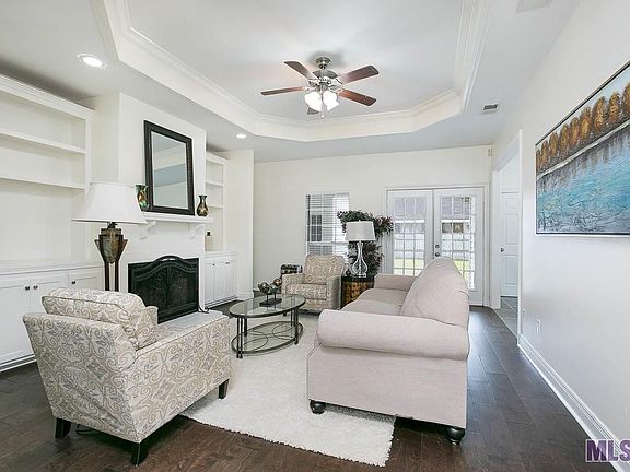 Newly Renovated 3 Bedroom 2 Bath Open / Split Floorplan in the heart of Prairieville with Great SCHOOLS!!! The exterior was just painted all white making this home's curb appeal one of the most inviting an updated looking in the Development. As you want through the double door front entrance you are welcomed into the main Living area with a wood-burning fireplace with built-ins on both sides as a mainstay for the room. The raised ceiling gives the room extra depth and appeal. New real wood flooring throughout this area and the small hallway. Off to the right is a large opening directly to the dining and kitchen area. Kitchen was just updated with new 12 x 20 porcelain tile flooring, cabinets painted white, new 3 cm slab granite countertops with white subway tile backsplash. New stove and under mount sink and faucet. The large laundry- Utility room sits in the rear of this area. Spacious Master bedroom has its own en-suite master bath with new faucets, large jetted tub and separate standing shower with new fixtures. On the other side of the home are the 2 additional bedrooms with large closets and ceiling fans. Rear loaded double garage with attached storage room. Fenced in rear yard.