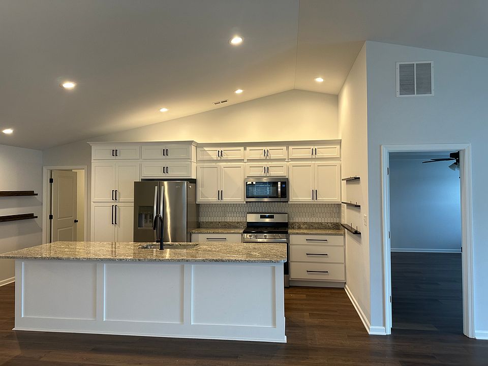 Move-in ready with all the upgrades! Built in 2021, this quality-crafted 3-bedroom, 2-bath home in sought-after Beverly Estates offers style, comfort, and convenience close to everything Lowell has to offer. The open floorplan is enhanced by soaring vaulted ceilings, creating a spacious and welcoming feel. The beautiful kitchen is a highlight, featuring granite countertops, newer stainless steel appliances, and plenty of cabinetry for storage and organization. The private owner's suite includes a spa-like bathroom and a large walk-in closet, while two additional bedrooms and a full bath provide versatility for family, guests, or a home office. Both bathrooms feature granite countertops for a consistent, high-end finish. Outside, you'll appreciate the fully fenced backyard with a 6 ft privacy fence--ideal for relaxing, entertaining, or pets. 2.5-car garage offers plenty of space for parking and storage. With quality construction and thoughtful details throughout, this home combines modern finishes with move-in-ready ease.