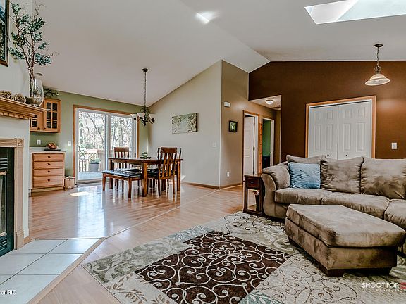 Be the next owner of this exceptionally well kept three bedroom home complete with two and one half baths on two very private wooded acres. Enjoy the open floor plan featuring vaulted ceilings with skylights, beautiful fireplace and newer carpet in the bedrooms. Relax on the covered front porch or grill dinner on the spacious back deck. You will also love the 23' x 35' three stall garage, fenced backyard and storage shed. Call today for your own personal tour.