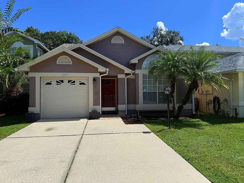 Hamlet at the Park. Three Bedroom, Two and One half Bath, 1397 sq.ft. Master Bedroom on the first floor with single vanity and shower. Two bedrooms on the second floor with hall bath. Laminate and tile flooring through out. Eat in kitchen with glass doors to fenced back yard. One car garage. Amenities include a Community pool
