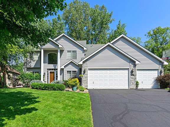 Beautiful 5-bed 5-bath home on a cul-de-sac with scenic pond and wooded views! Enjoy watching wildlife from the sunroom or deck. Main floor features a bedroom with full bath, sunroom with deck access and spacious living room with a dramatic wall of windows framing treed views. The kitchen opens to the living space and features maple cabinetry, granite countertops and Wi-Fi enabled stainless steel appliances (new in last 2 years). Upper level has three bedrooms on one level including a huge primary suite with a 7x17 walk-in closet, separate tub/shower and a double vanity. The updated walkout lower level offers a large family room, additional bedroom, full updated bathroom, den and flex space for a home office or gym. Oversized 21.6 x 31.6 garage with 10-foot ceilings and 8 foot doors provides plenty of storage. Located near Skyhill Park and Thresher Dog Park is just 10 minutes away. Bike riding distance to elementary and middle school if open enrolled in 196 schools is only 1.2 miles. Convenient to shopping at the outlet mall, MSP Airport, Mall of America and major freeways. Only 10 minutes to St. Paul and 20 minutes to Minneapolis.