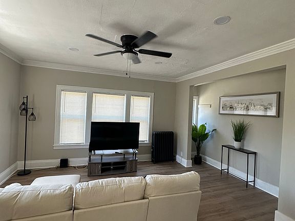 Sectional sofaFlat-screen tvRecessed lightingCrown moldingStainless steel appliancesBar seatingWood-look luxury vinyl flooring