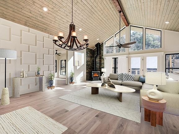 Nestled on 4.2 acres in the prestigious High River Subdivision, this stunning 4-bedroom, 3-bathroom home offers the perfect blend of luxury, comfort, and natural beauty. With 3,504 square feet of living space, this brand-new (built in 2024) residence sits along the serene Coosawattee River, providing tranquil views and ultimate privacy. The home boasts a modern Craftsman design, with high-end finishes throughout. Two spacious bedroom suites are conveniently located on the main floor, each with elegant bathrooms and ample closet space. Two additional bedrooms are located off the terrace level, offering additional space for guests or family, The open-concept living area features large windows that flood the space with natural light, highlighting the beautiful craftsmanship. The chef-inspired kitchen is equipped with top-of-the-line appliances, granite countertops, and custom cabinetry. The living room is perfect for entertaining with its cozy fireplace and direct access to the covered terrace, which features an expansive outdoor entertainment space and kitchenette—ideal for gatherings and relaxing while enjoying river views. A concrete, all-paved driveway leads to a carport, ensuring convenience and easy access year-round. The gated community offers security and exclusivity, while the peaceful surroundings allow for the ultimate riverfront lifestyle .This is a rare opportunity to own a modern river retreat in a highly sought-after community. Don't miss your chance to own this exceptional property—schedule a tour today! Pictures are digitally staged. No furnishings included.