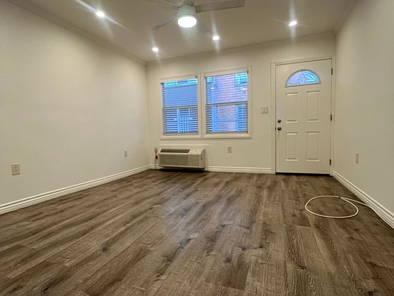 Looking for a smaller economical pad in Hollywood from which to launch? This is the place. The 19-unit complex is a short walk to Hollywood's premier activities, and a short drive to the San Fernando Valley, Silverlake, Mid-City and downtown L.A. The unit (#4) features lots of windows, A/C, modern kitchen cabinets, ceiling fan, stove and refrigerator, and wood laminate floors. Sorry, there is no dishwasher, and the unit does not have a parking space associated with it. Street parking can be tight. The apartment is on the first floor. Tenants pay for electricity and gas service