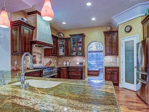 Beautiful single story with upstairs bonus room and 5th bedroom on 1.5 acres of park like grounds. Fully remodeled... dream chefs kitchen, cherry cabinets with leaded glass, slab granite, 6 burner Jenn-Air range, walnut flooring in all traffic areas and formal living room, travertine floors in all baths with radiant heat in master. In-ground trampoline, in ground pool with slide, hot tub, tons of fruit trees and garden space. Covered patio with water feature. This home is an entertainers dream.