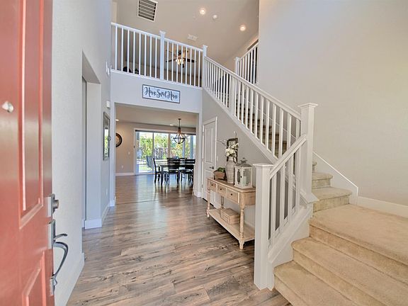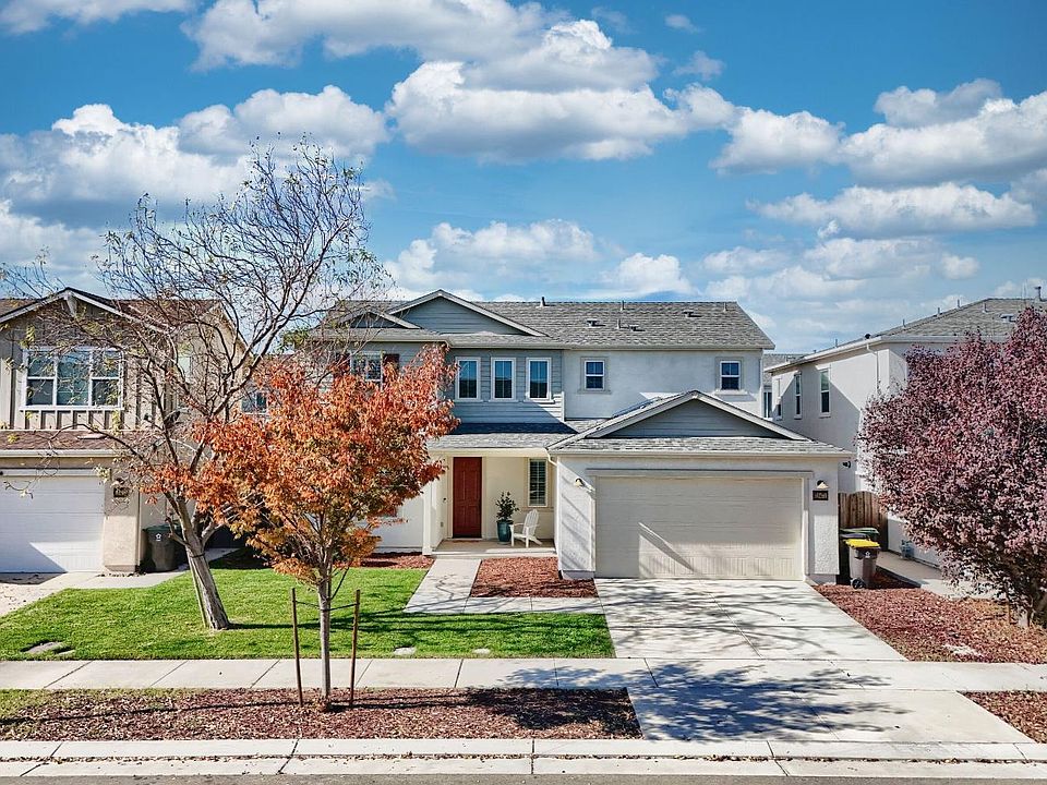 Where style meets the shoreline. Welcome to River Islands living at its best. This East Facing, 4 bedroom, 3 bath, 2506 square foot stunner blends modern comfort with laid back luxury. A spacious front porch sets the tone, leading into an open concept floor plan with sleek LVP flooring and a chef's kitchen that demands attention. White shake cabinets, granite counters, huge island with sink and stainless steel appliances ready for your next dinner party. Downstairs features a guest bedroom and full bath, perfect for visitors or a private office. Upstairs a loft anchors generous bedrooms, a convenient laundry room and a primary suite that feels like a retreat think spa style bath and a large walk in closet built for fashion lovers. 3 Car Tandem Garage perfect for your toys or tinkering. Step outside and get ready to entertain - a custom pergola, brick gas fireplace and water feature make this backyard your own resort escape. Best of all this home has PAID SOLAR! All this just one block from the lake and minutes to the waterfront boathouse restaurant, deck, sand volleyball courts and bocce. Live Bold, Live Beautiful, Live River Islands.