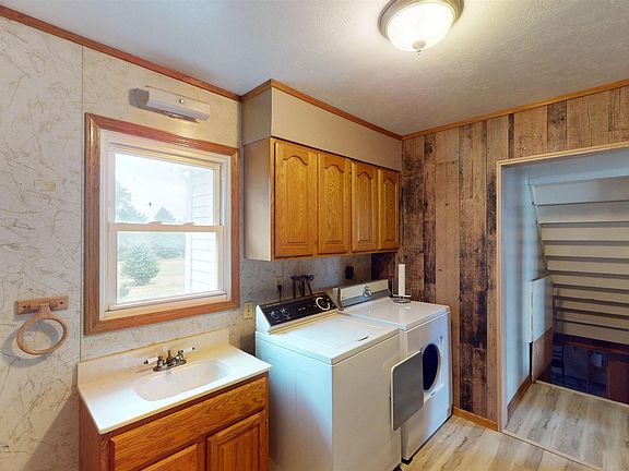 Welcome to your dream retreat! This 4-bedroom, 2.25-bathroom home is nestled on a sprawling 9.5-acre rural lot, offering the perfect blend of tranquility and space. As you step inside, you'll be greeted by an inviting great room/den. The great room is a great place to gather around the cozy wood burner. That connects to the kitchen, dining and formal living areas, creating an ideal space for gatherings and entertaining. The galley kitchen features modern appliances, in a workable space. The adjacent dining area boasts views of the lush surroundings, allowing you to enjoy meals with a picturesque backdrop. The main floor bathroom is conveniently located next to the main floor bathroom. Three additional well-appointed bedrooms provide plenty of added sleeping space on the second floor, while the half bath ensures convenience for everyone. The large garage is attached by the mud room that has laundry hook ups and provides a drop zone for your coats and shoes, keeping the mess out of the main part of the house. Step outside to discover your own private paradise. The expansive grounds provide endless opportunities for outdoor activities, gardening, or simply unwinding in nature. Imagine hosting summer barbecues on the patio or raising livestock as a hobby farmer. The property is currently set up to accommodate your aquine interests with the barns and other outbuildings. Located in a peaceful area yet just a short drive from local grocery stores, this property offers the best of both worlds. Don't miss your chance to own this incredible home on 9.5 acres—schedule a showing today and experience the lifestyle you've been dreaming of!