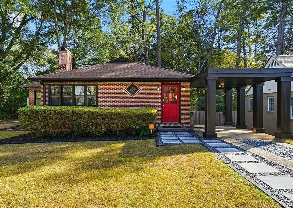 Welcome to 1848 Brandywine St SW, a turn-key gem in Sylvan Hills where classic 1950s charm meets ultimate modern entertainment. This striking, four-sided brick ranch makes an immediate statement with its enhanced curb appeal, accented by a bold red front door and elegant black trim against the exterior. Inside, the functional 3-bedroom, 1-bathroom home spans 1,149 square feet and features gleaming original hardwood floors throughout. The interior is filled with great natural light, maintaining a sophisticated, neutral aesthetic and a crisp, move-in ready atmosphere. The cozy family room is centered around a charming, decorative fireplace. The true highlight of this property is the incredible outdoor oasis: a private, fully fenced-in backyard featuring a gathering-ready raised fire pit and a massive, custom-built 500+ square foot covered patio. Designed as a spectacular outdoor living room, this space is fully equipped for epic entertaining, boasting a custom-built sectional with custom cushions, a high-definition projector with a 15-foot powered screen for movie nights, two remote-controlled ceiling fans, and six dedicated power outlets. This home offers unparalleled lifestyle and convenience, situated just moments from the BeltLine, the vibrant Lee + White food and brewery district, the under-renovation John A. White Golf Course, Perkerson Park, and Tyler Perry Studios. Enjoy easy access to major downtown attractions like Mercedes-Benz Stadium (MBS), State Farm Arena, and the exciting Centennial Yards development. Commuting is a breeze with quick access to MARTA and all major interstates, including I-20, I-75, I-85, and GA-166, all while maintaining close proximity to Hartsfield-Jackson Atlanta International Airport. This is the perfect charming brick home for the owner who loves to entertain and demands prime connectivity.