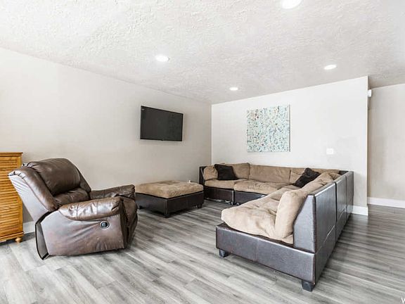 Step inside and see what sets this beautifully updated rambler apart. The first things you'll notice is the new laminate flooring and new energy-efficient windows installed throughout. Next you may notice that everything you need is on the first floor. The spacious living room features a beautiful brick surround fireplace. A few steps further and you'll find yourself in the well-equipped kitchen featuring a substantial amount of countertop space and double-ovens a functional spot to try your hand at old family recipes for the holidays. The relaxing master bedroom suite features two walk-in closets and en-suite bathroom with separate shower and jetted tub. Master bathroom has access to the main floor laundry room. Two additional bedrooms and the large laundry room complete the main floor. Need more space? The lower level has a second family room and large multi-purpose room, currently used as a home office, but would make a great storage room as well. There is also four additional bedrooms, a full bathroom and second laundry room. Home was updated with a new roof 2 year ago and one of the two water heaters was replaced last year. Outdoors you'll find a large deck perfect for outdoor entertaining and a large fully fenced yard. The extended RV pad is great perfect for shooting hoops or storing extra toys. Located in a quaint Sandy neighborhood with easy access to great schools, parks, shopping, entertainment and those beautiful mountains Utah is known for.