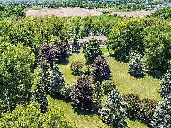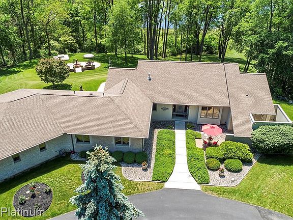 Serene tranquil 5.83 Acrs surrounds this Brick & Cedar Ranch-Meticulously cared for in every detail - tucked behind an array of evergreens, pines & flowering trees & fronting a Spring Fed 25' deep Private Lake. Cathedral ceilings enhance the open flr plan - perfect for entertaining. Enjoy cooking in the newkitchen offering Cherry cabinetry, granite & stainless appl. - casual dining bay with views to the lake. A wall of glass doors takes you from the Great Room to an enclosed porch & deck - more great views !! Split Bedrooms - Nice Master suite with updated bath & door to the porch + 2 bedrooms & Den on opposite side of the home. Neutral Decor - Hickory & tile flooring. Expanded living space in the Finished walkout - Family Room incl a Wet Bar & door to large patio. 2 Bedrooms & Full Bath - laminate flooring for easy care. Slightly rolling yard from the home down to the Lake & Dock. Generac generator 42x40 pre-engineered Outbldg-12 & 13' doors,220. Home & property are a Rare find !