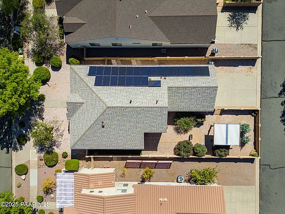 Enjoy Stoneridge living with this beautifully maintained home featuring a new roof (2024), owned solar system, and new bamboo flooring throughout. The open kitchen with pantry and plenty of storage flows into a spacious dining and living area--ideal for gathering with family and friends. The primary suite offers an inviting archway entry, dual sinks, walk-in shower, and soaking tub. Guests will appreciate their own comfortable bedroom and bath.Step outside to your private backyard retreat, complete with a covered patio, new pergola, beautiful fountain and low-maintenance landscaping. With fenced yard space, artificial turf, and plenty of room for pets or entertaining, outdoor living is easy here. Just a short walk to the neighborhood park, plus access to Stoneridge's clubhouse, indoor pool, golf, and more. Don't miss your opportunity to own this energy-efficient home in one of Prescott Valley's most sought-after communities!
