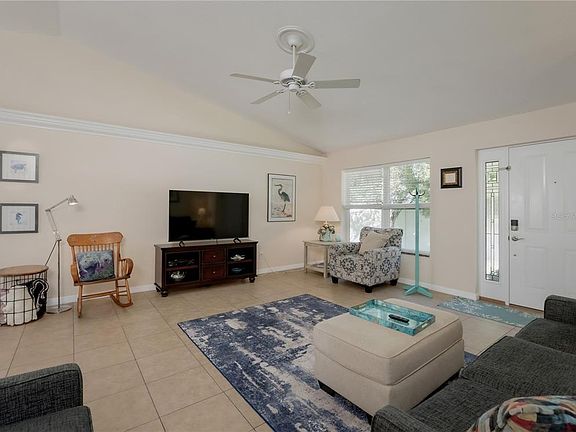 Bungalow A is an updated, bright and open space. This furnished villa has ceramic tile floors, vaulted ceilings and has been completely repainted from the ceiling down to the baseboards. It has two-bedrooms, one-bathroom, stackable washer/dryer, and countless additional amenities. The living room is a large and spacious space with vaulted ceilings, modern furnishings and a new 58" SmartTV, hall closet with custom storage, updated blinds and a ceiling fan. The kitchen is updated, with recessed LED lighting, custom high-end granite countertops, hardwood cabinets, double-door refrigerator (ice-maker & in-door water), electric range, dishwasher, disposal & microwave. The kitchen is fully stocked with everything needed to prepare any meal. The Primary bedroom has a ceiling fan, large double closet and has a door connecting it directly to the bathroom. The room is furnished with a large Queen bed, two dressers and a SmartTV. The 2nd bedroom has a unique, custom-built-in shelving unit with large, granite window seat, double closet and ceiling fan. The 2nd bedroom has a Queen bed, dresser, Smart TV and antique wood desk. The large bathroom has been completely updated with ceramic tile floors, a new double-sink-vanity, ceramic tile lined shower over a cast iron tub, and a separate closet housing a stackable washer/dryer, fully stocked with all the necessary linens. The unit also has an updated hot water heater (2024). The private backyard is your own outdoor oasis, with a large composite-wood deck and gazebo with ceiling fan, outlets and flat-screen TV capabilities. The gazebo houses an exterior dining table with four chairs and ottomans. The backyard is fully fenced with 6 foot PVC fencing and lined with palms and bamboo, providing extreme privacy. The Bungalows sit on the Pinellas Trail, equidistant from Downtown Dunedin and Downtown Clearwater, each only 5 minutes away by car and 15 minutes away by bicycle. The sunsets of St. Joseph Sound are only two and a half blocks away. Come enjoy the best of Florida living in this fully-furnished, beautifully renovated tropical oasis!
