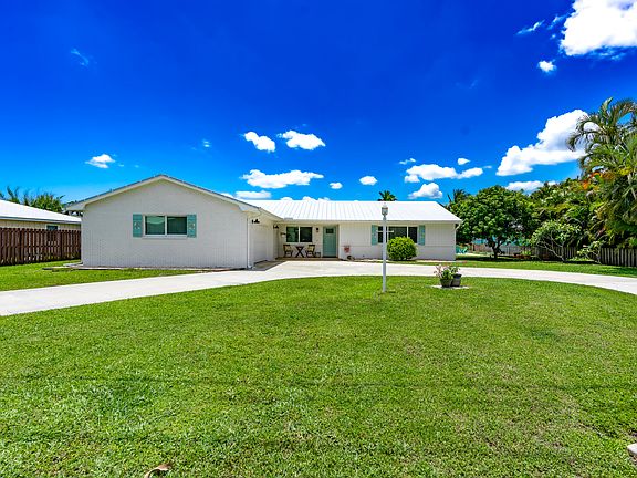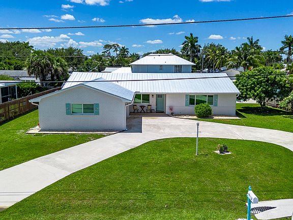 Located in the highly sought-after waterfront community of North River Shores, this beautiful CBS home blends modern style with coastal charm. Featuring a brand new metal new roof, impact doors and windows, and a circular driveway, this light, bright, and airy residence welcomes you with an open floor plan, new tile floors, and a fresh, modern aesthetic throughout. The spacious 14x14 bedrooms are part of a desirable split floor plan. The ensuite master bedroom includes a large walk-in closet, while the remodeled bathroom adds a touch of luxury. The large kitchen is a chef's dream, offering ample counter space and stainless steel appliances, ideal for entertaining or casual family meals. Step through the sliding doors onto a private patio and enjoy your beach-feel backyard, mature fruit trees, and fenced yard perfect for relaxing outdoors. A shed provides extra storage, and a well keeps the lawn green without added expense. The garage is air conditioned, making it perfect for a workshop, gym, or hobby space, and the home includes a split unit AC for energy-efficient comfort. Residents of North River Shores enjoy exclusive access to Nosaw Park, featuring a boat ramp, benches, and a basketball court. This boating community sits along the North Fork of the St. Lucie River, offering the perfect lifestyle for water enthusiasts. Just a short bike ride across the Old Roosevelt Bridge lands you in the heart of Downtown Stuart, renowned as the "Sailfish Capital of the World," with its charming shops, waterfront dining, the historic Lyric Theatre, and more. With the Treasure Coast Mall, Martin Memorial Hospital, the library, and other major conveniences nearby, this home offers the ideal blend of tranquil living and vibrant coastal community. Don't miss this opportunity to own a piece of paradise!
