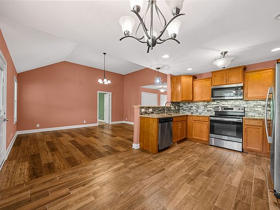 Welcome to this beautiful single-level home offering 3 spacious bedrooms, 2 full baths, and a 2-car garage. Step inside to discover a bright, open-concept living area featuring vaulted ceilings and a smooth transition into the kitchen that is perfect for entertaining and everyday living. The kitchen showcases marble countertops, a sleek tile backsplash, stainless steel appliances, and plenty of cabinet space for all your essentials. Retreat to the primary suite, highlighted by a vaulted ceiling, plush carpeting, and an en-suite bath with double sinks, a walk-in shower with built-in seating, and refined finishes. Step out back to enjoy a covered deck with stairs leading to a fully fenced backyard that is ideal for outdoor relaxation or gatherings with friends and family. Modern comfort meets timeless design in this thoughtfully crafted home. Schedule your private showing today! 365 DAYS