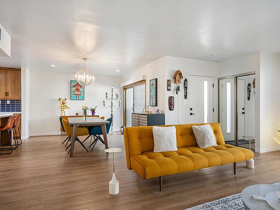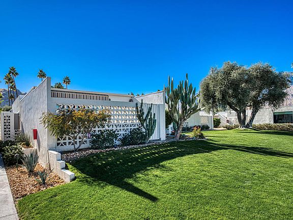 A lifestyle of opulence and sophistication embedded in mid century modern architecture located in the heart of South Palm Springs. Three vastly sized bedrooms paired with two lavish bathrooms are just compliments to the newly remodeled kitchen with solid wood cabinetry, quartz countertops including the double waterfall island and recently replaced stainless steel appliances. With a plethora of counter space to display your awe-inspiring culinary creations and host gatherings, you are still part of the impressive grand open living space. The entire interior has newer installed luxury flooring. In addition to over 1,700 sq. ft. of living space, you can enjoy three separate outdoor patios with the highly upgraded pavers. Relaxation is just outside your front door with the immense pool and spa plus parking is just seconds away. The pride of ownership is just incredible with well thought out improvements with zero compromise of quality. Make this masterful unit a priority on your search and make it yours to enjoy. NO LAND LEASE.