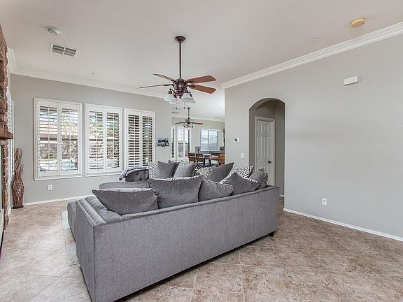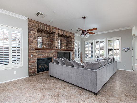 A must-see 4 Beds and 2.5 Baths home with a private backyard oasis! 2336 sq ft great room floor plan with stunning interior details including diagonal tile flooring, gray paint, plantation shutters, recessed lighting and beautiful stone feature wall with gas fireplace. Gorgeous eat-in kitchen that features white staggered cabinetry, Quartz countertops, tile backsplash, stainless appliances including an electric range/oven, desk nook, kitchen island with additional seating & pendant lighting, and naturally lit dining area with access to the backyard. Upstairs includes a carpeted loft, master retreat and 3 secondary bedrooms. The master bath has a dual sink vanity, separate tub & shower and walk-in closet. The backyard is the perfect space for outdoor living with covered and extended patios , pebble tec pool w/ water feature & spillover spa, raised pavered patio, and mature landscaping. Other features: 2 car garage, dual sink vanity in bath 2, water softener, new roof, carpet & ceiling fans in all bedrooms, beautiful views, desk nook in loft area, and great community amenities including parks, lakes, Starpointe Residents Club, sport courts, golf, and so much more! See today!