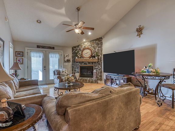 Tucked just outside the town limits, this beautifully maintained home offers easy, low-maintenance living with high-end touches throughout. From the moment you step inside, you'll notice the attention to detail — rich hardwood flooring, upgraded lighting, and an open floor plan that feels bright and spacious. The kitchen is both stylish and functional, featuring sleek granite countertops, a custom tile backsplash, and modern fixtures that tie the space together. A gorgeous stone fireplace creates the perfect focal point in the main living area, adding warmth and charm year-round. Natural light fills the enclosed sunroom, making it the perfect spot to relax or entertain. The primary suite includes a walk-in tiled shower, offering both comfort and elegance. Every inch of this home has been cared for with pride. The seller is including all kitchen appliances along with the washer and dryer, making your move seamless. This one truly stands out — tasteful, turnkey, and ready for its new owner to enjoy. Buyer/buyers agent to verify all information.
