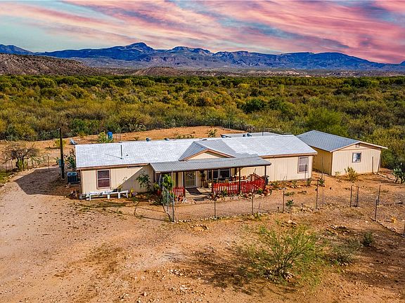 Welcome to 18488 Golf Course Avenue in Wikieup, Arizona your chance to own two homes on over five acres with big-sky views, abundant space, and the perfect blend of privacy and convenience. Located less than a mile from restaurants, gas, and the center of town, this versatile property sits just off Hwy 93/I-11, offering easy access while still feeling peaceful and rural. MAIN HOME: TTWO OVERSIZED COVERED PATIOS and a well-kept 2000 double-wide at the rear of the property overlooking the Big Sandy Wash with beautiful views of Cholla Canyon. An expansive, full-length covered back patio provides shaded outdoor living space and takes full advantage of the peaceful desert landscape. Inside, this spacious four-bedroom home features vaulted ceilings, large windows, a living room PLUS family room, split floor plan, two full bathrooms, indoor laundry, kitchen island, and casual dining. Updates include newer appliances, all of which convey along with a new well pump and water heater. The perimeter has fencing, some cross-fencing, a chicken coop, a triple carport, and a detached garage and 3 car-carport. The guest house, also a manufactured home, sits closer to the highway and is currently leased, providing immediate rental income. This two-bedroom, two-bath residence includes a split floor plan, indoor laundry, covered front and rear patios, and carport parking. The current rent of $700/month offers excellent mortgage offset, seasonal presence, or investment potential, ideal for multi-generational living or anyone needing a home plus an income-producing dwelling. Property has a plentiful well, connected to city electric, features propane cooking, indoor laundry, walk-in closets, covered outdoor living spaces, and reliable internet & cell service. At approximately 2,000 feet elevation, the land offers mild climate, room for RVs, horses, cows, chickens, off-road vehicles, storage, and homestead living. Partial fencing helps keep open-range cattle out of the primary yard areas. Located about 45 minutes to Kingman, 1 hour to Wickenburg, 1.5 hours to Needles or Sun city/Phoenix area, and a little over 2 hours to Las Vegas. Ideal location for year-round living, a seasonal retreat, a family compound, or a working mini-farm. A rare chance to own two homes, five acres, and the best of rural Arizona living on one versatile property.