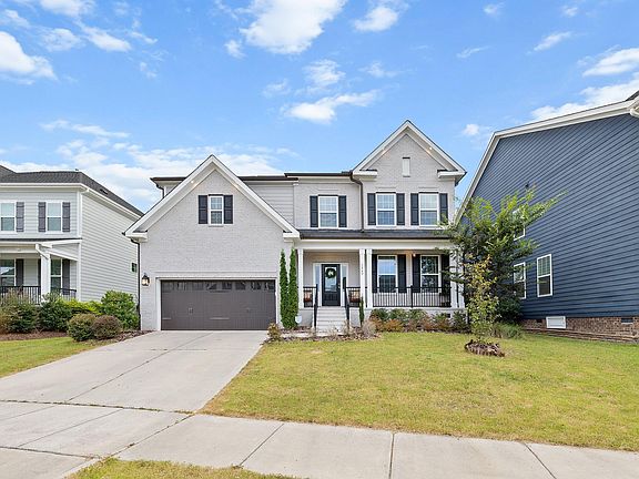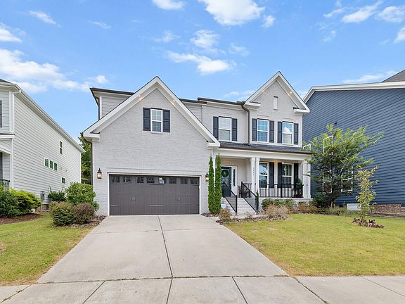 Experience the perfect blend of modern luxury and sophisticated style in this stunning Victor floor plan, located in Cary's highly coveted Amberly community. Inside, soaring ceilings and five-inch engineered hardwood floors flow through the first-floor common areas and hallways. The entryway makes a striking first impression with elegant chair rail and judges paneling—details that continue seamlessly into the formal dining room and main hallway. At the heart of the home, a chef's kitchen impresses with a gourmet five-burner gas cooktop, built-in microwave/oven wall combination, and a vented wall-mounted hood. A grand center island, bay-window breakfast nook, and light-filled sunroom create the perfect setting for entertaining or everyday living. The first-floor primary suite offers a private retreat, highlighted by a custom eight-foot tiled walk-in shower with a bench, rainfall showerhead, and hand-held slide bar—a true spa experience. Up the boxed oak staircase, you'll find a spacious bonus room, four additional bedrooms, and a full bath, providing abundant space for family, guests, or a home office. Originally built as a model home for Water's Edge, this property showcases numerous upgrades and thoughtful touches that combine elegance, functionality, and comfort. Don't miss your chance to own this exceptional home—schedule your showing today before it's gone