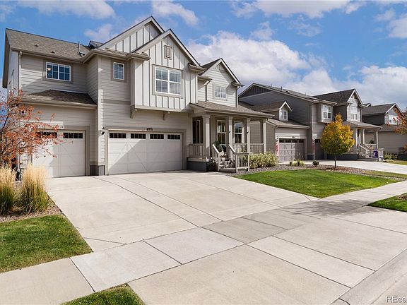 Welcome home to this spacious and thoughtfully designed 5 BDRM, 4 BATH home in the highly sought-after Compass neighborhood of Erie. Step inside to find a welcoming entry and formal dining room that lead into a chef’s kitchen, complete with an oversized island and open flow into the stunning two-story family room with a cozy gas fireplace.The main floor offers a versatile bedroom and full bath, ideal for guests or a home office. Upstairs, you’ll find a large loft with its own bathroom, plus a luxurious primary suite featuring a five-piece bath and a walk-in closet with custom built-ins that conveniently connects to the laundry room. Two additional bedrooms share a well-appointed Jack-and-Jill bath. The finished basement expands your living space with a large recreation room, wet bar, and an additional bedroom. It’s plumbed and ready for a future bathroom, perfect for growing families or entertaining guests. Enjoy Colorado living at its best from the welcoming front porch, an ideal spot to relax with coffee and watch Erie’s famous hot air balloons drift by. The backyard offers even more outdoor living with a covered deck featuring custom shades for privacy, plus an extended stamped-concrete patio perfect for gatherings. The oversized three-car garage is finished with epoxy floors, and additional updates include new flooring, two furnaces, and a radon mitigation system. Located in one of Erie’s most desirable communities—just minutes from parks, trails, top-rated schools, and charming downtown Erie—this home perfectly blends luxury, comfort, and small-town charm.