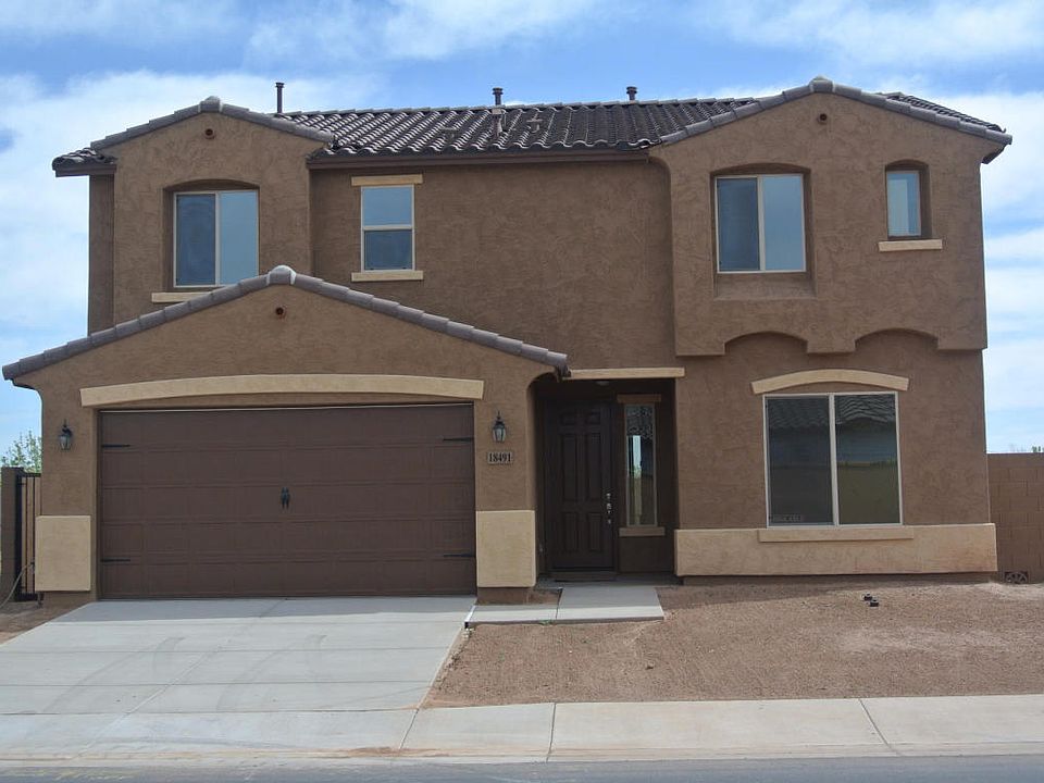 Supersize Great Room, 5 bedroom, 3 bath, Loft, Tech-Center, extra deep 2.5-Car Garage Brand new construction with upgrades included. Open kitchen with island, Granite Countertops, maple cabinets, backsplash, stainless steel Whirlpool Gas Stove, Dishwasher & Built-in Microwave, 18x18 tile, soft water loop, gas stub for BBQ, Speakers throughout with volume controls. Raised vanity in master bathroom with double sinks, upgrades fixtures, separate tub & shower. Many energy efficient features that save you money: Vinyl Dual pane-low E windows, Radiant Barrier roof-top sheathing plus R40 insulation. 8'' high exterior doors, low flow plumbing fixtures and more. Located in a community with several parks, walking paths and a beautiful fishing lake with water fountains. We offer many builder incentive