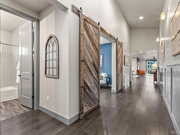 Welcome to this stunning semi-custom Tri Pointe home, professionally designed &meticulously upgraded. Perfectly positioned on a premium corner lot backing to a greenbelt with breathtaking mountain views, this 4-bed, 4-bath home is a must-see. Step inside to impressive 13-foot ceilings, upgraded lighting, 9-foot doors, & wide-plank LVP flooring. The elegant entry leads to an office with custom barn door & inspiring west-facing views of the pond/mountains. The kitchen is a home chef’s dream: oversized quartz island, ample cabinetry/countertops, upgraded pantry, and premium KitchenAid appliances, including a six-burner gas cooktop with pot filler. The open design flows to the dining area featuring custom California accordion glass sliders that seamlessly merge indoor/outdoor living. The living room includes a custom tile fireplace & second set of sliders. The expansive primary suite is a private retreat with a vaulted ceiling & a gorgeous en-suite bath featuring designer tile, plus walk-in closet, all connecting directly to the laundry room (LG washer/dryer included). A main-floor guest suite and a third bedroom offer private en-suites with designer tile and granite finishes. The walkout basement is an entertainer's paradise: large media area, a fourth bedroom, 3/4 bath & a fully equipped wet bar. Surprise & delight guests with the secret speakeasy/game room, featuring reclaimed wine & whiskey barrel accents. The basement also includes a versatile gym/craft area with storage & custom details like a built in dog kennel. Outdoor living is exceptional with an upgraded deck featuring an outdoor TV, commercial heater, hot tub, all overlooking the greenbelt/mountains. Enjoy the fire pit, dog run & fully landscaped yard. The upgraded garage offers epoxy floors, workbenches & electric fans. This home is equipped with a Solar System, Tesla Powerwall, EV charger. Community amenities incl, 2 pools/fitness centers, 13+ miles of trails, Tennis Courts, Playgrounds and so much more!