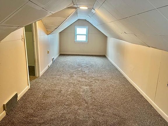 Come see this well sized bungalow with first floor master bedroom and loft like upstairs bedroom, and great area for the remainder of the living space. Main bedroom is larger than most, and upstairs bedroom runs the length of the house, but has lower pitch on ceiling. Super large laundry room with washer and dryer included along with brand new forced air furnace and air conditioning. Kitchen with stove and fridge, and bathroom and large open living room round out large living area. Nice fenced in back yard and shed in a quiet treed subdivision. This house would be perfect for single person or couple starting out.