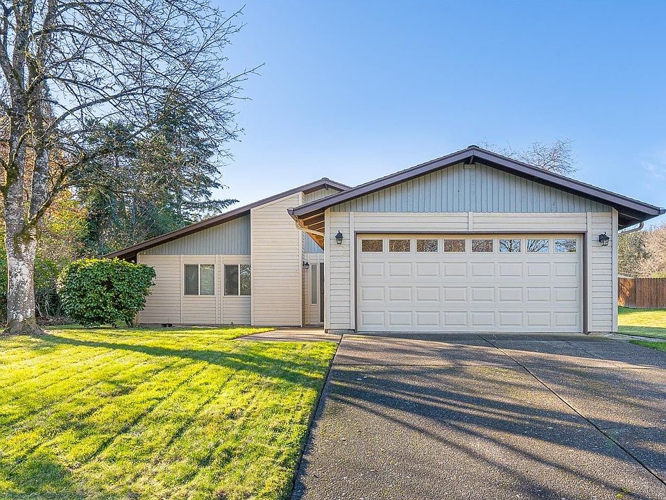 This Realtor owned home is a unique ranch style with a "great room" that includes a sunken living room with a 16' vaulted ceiling, exposed beams, fireplace, and slider to a 14' x 15' covered deck. Kitchen remodeled and most flooring replaced. New exterior paint and garage door. Large, 10.000+ sf lot near the end of a quiet cul-de-sac and just a block away from Robinwood Park. Excellent location! (sign coming shortly)