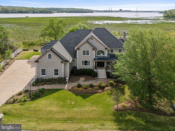 Constructed in 2008 as a home builders residence, 18495 Running Pine Ct was crafted with the highest quality materials and immense attention to detail, offering a truly breathtaking tour room by room. Step inside to be greeted by the open foyer featuring 18' ceilings and a custom chandelier overhead. Upon entry, you are met with immediate views of Quantico Creek, a boater, fisherman, and birdwatchers paradise. The main level was designed to feature views of the water from all possible angles through the magnificent oversized picture windows throughout. Newly refinished hardwood floors guide you through the main level starting with the newly renovated kitchen featuring beautiful white quartz countertops, further capturing the daylight. This chef's dream includes dual wall ovens AND dishwashers, an oversized island-set cooktop, as well as multiple sinks. Last but not least, a built-in Ariston Italian Espresso machine guarantees the perfect cup of coffee day after day. Of important note, all appliances are wired and plumbed for both gas and electric supply. Off of the kitchen, a private study complimented by tray ceilings and a private exterior entrance provides privacy complimented by its own HIDDEN full bathroom. The living room is the focal point - outfitted with floor to (17') ceiling windows, a 2nd custom chandelier, and a double-sided gas fireplace opening up to the one of the owner's favorite rooms in the house - the reading room - enclosed by even more jaw dropping windows. Finishing off the main level are a formal sitting room and wainscoting-lined dining room as well as a half bath for added convenience. Back to the foyer and up the custom iron-railed stairs leads you to 4 spacious bedrooms - 2 of which offering ensuite bathrooms. The primary bedroom is the pinnacle of this home - featuring two private balconies overlooking the water, multiple skylights, and an expansive walk in closet w/ its own washer/dryer/steamer. The primary bathroom will make you feel like you are at the daily spa - featuring heated floors, a Turkish steam shower and oversized jacuzzi tub, once again, with water views. Extra wide hallways and two additional full bathrooms ensure everyone has their own space and privacy while several walk in closets offer endless storage options. Down to the lower level, hit the remote and watch all of the blinds roll up to let in the unique amount of natural light into this space. The lower level was designed to offer versatility in your every day life - featuring 3 additional living spaces, a 5th bedroom and 4th full bathroom, a 2nd full gourmet kitchen, a glass doored wine storage room, and last but not least, a professional Brunswick billiards table. Whether you are looking to generate supplemental income from the fully outfitted layout or entertain year round, options are truly endless. Of important note, the 10' ceilings of the lower level are lined with R15 insulation designed to contain all acoustics and thermal energy. A 4-car Italian tiled garage enclosed by 17' ceilings provides safe, secure storage for all of your toys. Outside, a 60+ ft Treks deck outfitted with a gazebo covered dining space offers unparalleled views of the creek. Located on a secluded culdesac of the Graham Park Shores neighborhood, enjoy the peace and tranquility of a waterfront lifestyle with the benefits of being minutes from the city. With the newly built Rose Gaming Resort (7 min.) + Quantico Amtrak Station (12 min.) just down the street and plans in place to develop a waterfront district on the coast of Quantico Creek (just a short boat ride away), location is superb. Additional features include multiple washer/dryers (all floors), central vacuum (all floors), x2 walkable attic spaces, x2 tankless water heaters, x3 separately zoned HVAC systems, a 22 Kw Generac gas generator, and so much more... Please refer to documents section for a detailed list of the many upgrades/features of this incredible home...