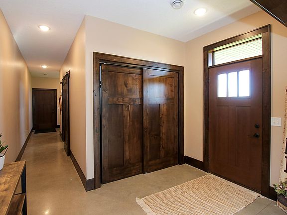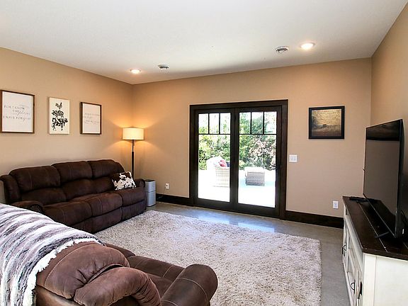 Spacious 40x60 heated garage with 16' sidewalls, finished interior, and mezzanine — ideal for hobbies, storage, or business. Maintenance-free exterior for easy living. Granite kitchen island & counters, stainless steel appliances, and built-in double oven. 9' ceilings, in-floor heat throughout, and a luxurious owners suite with double sinks & walk-in closet. 6'x57' front porch and 18'x18' concrete patio overlooking the river — perfect for relaxing or entertaining. Irrigated landscaping with concrete curbing for a polished look. Private & Peaceful Setting. Enjoy the beauty of nature from your own backyard with panoramic river views and space to roam. Whether you're hosting guests or soaking in the quiet, this home delivers comfort and style in every detail. Close to town, far from ordinary. This is more than a home — it’s a lifestyle. Come see why this property is turning heads.