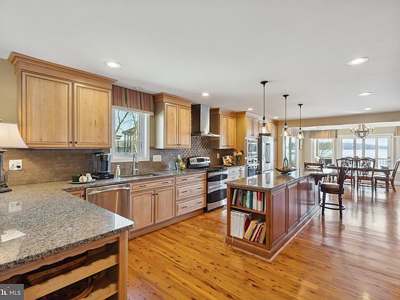This ranch-style house sits on a half-acre and the lot feels much larger as it backs up to Quantico Creek, a main tributary of the Potomac River. The red brick driveway & front walk bring you to front double doors that open to Australian Cypress hardwood floors throughout the entire house. Oversized windows in the family room overlook the water and can be seen from the living room, where you can enjoy the wet bar or fireplace—both of which are made of hand-laid stone. Have your morning coffee on the screened in porch while you watch the sunrise and nature come alive, then make your way to the wood-paneled office (bedroom #4) overlooking the creek in the backyard that flows out into the Potomac. The kitchen is newly renovated and is perfect for cooking and entertaining friends and family. It features custom maple cabinets, stainless steel Bosch appliances, three ovens and a large island with surplus counter, storage and seating space. The open-floor plan flows from the breakfast nook to the kitchen, and then the dining area. From there, the dining area features a sliding glass door that leads to a screened in porch and open deck, where you can take in the waterfront beauty of this home and enjoy the custom pond and waterfall. The flat backyard is the perfect place to enjoy the warm summer evenings and the peaceful surroundings, making it the ideal spot for barbecues, outdoor dining and gatherings. The primary bedroom has an en-suite bathroom, large windows overlooking the water, and two walk-in closets—one of which has custom shelving. This well-maintained house has been kept consistently up-to-date and features no HOA charges. In addition to the renovations mentioned above, the climate-controlled crawlspace was encapsulated in 2019. The roof was replaced in 2017. The windows in the kitchen and nook were upgraded in 2022. Finally, the HVAC system was replaced in 2016 and is still within the 10-year warranty. This home offers comfort, style and location—a quiet oasis just minutes away from shopping, dining and entertainment. This home is a must see and won’t last long.