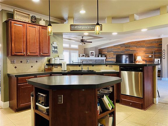 - Recessed Lighting, Bar, Laminate Counters, Open Floorplan, Ceiling Fan(s), Built-in Features, Crown Molding, Storage