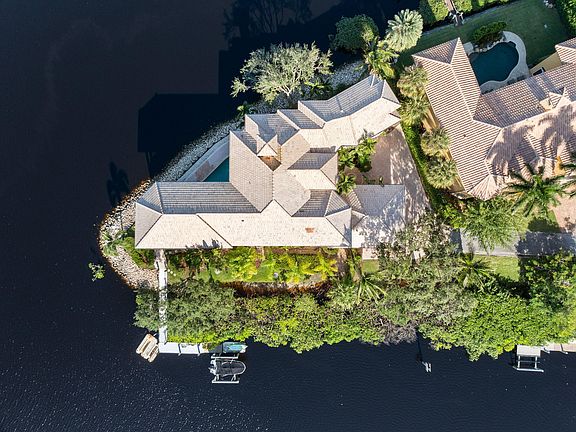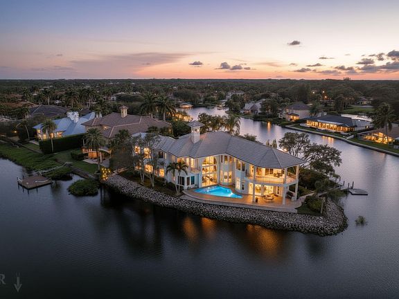Experience the pinnacle of waterfront living in this extraordinary custom estate, gracefully positioned on a rare point lot at the tip of a private peninsula on the scenic Loxahatchee River. Set within a gated enclave w/ over 400 feet of water frontage, this home offers unmatched privacy & panoramic views of the river & surrounding nature preserve. Designed for those who value timeless architecture & the beauty of natural surroundings, the residence features soaring ceilings & expansive living spaces including 4 large bedrooms, private office w/ coffered ceilings, billiard room, workout room, sunken wet bar & a spacious gourmet kitchen.The primary suite provides a serene retreat w/ coffee bar, private waterfront balcony & sweeping river views. While this original residence (see more)... invites your personal vision for modern updates, it offers an exceptional foundation of quality craftsmanshipcomplete with marble & bamboo flooring, impact windows, elegant crown molding & exquisite architectural details throughout.